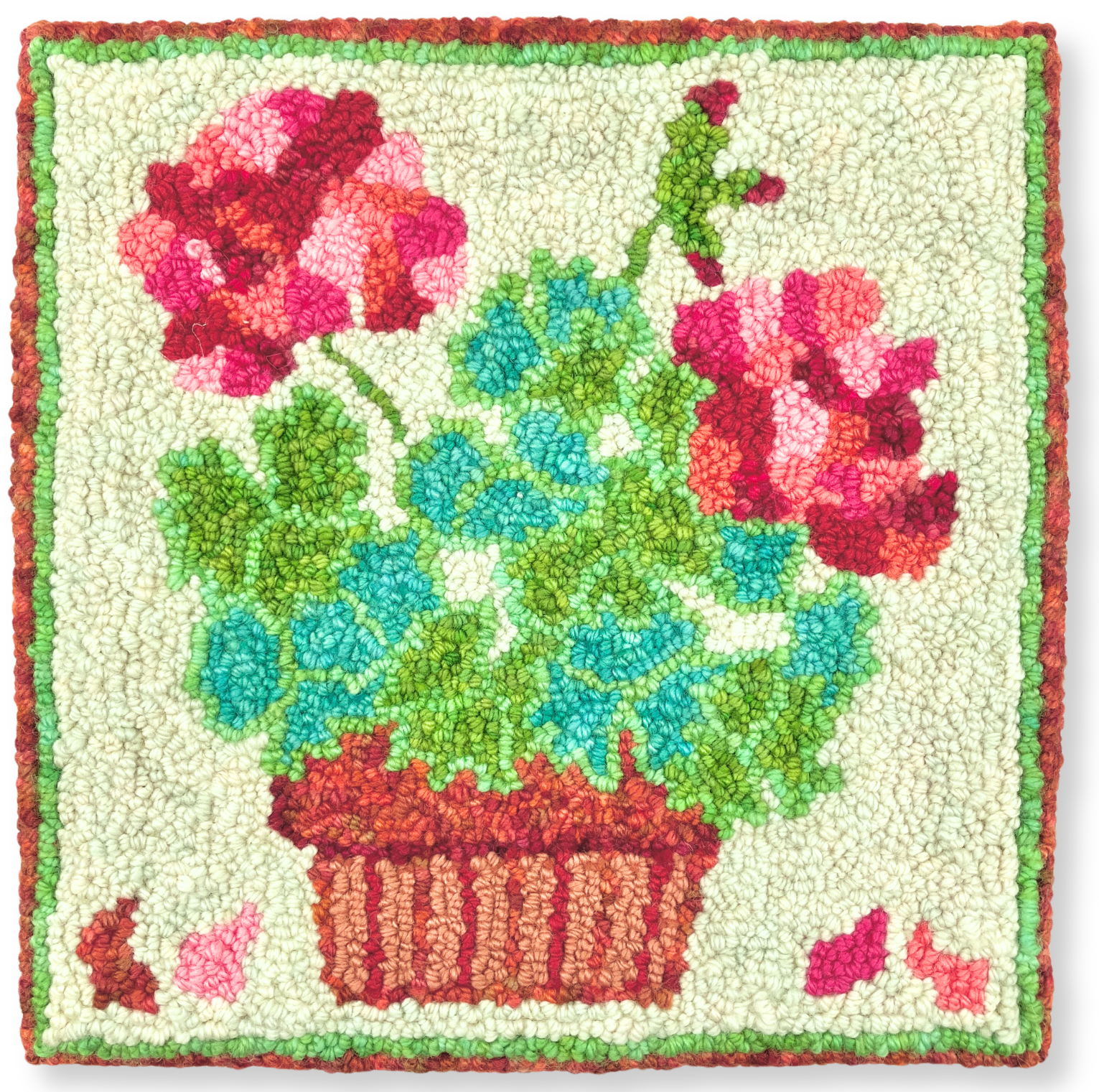 Pattern is hand traced on 24”x24” (61 × 61cm) cloth and includes at least 4” (10.2cm) of extra backing on each side. Yarn not included.