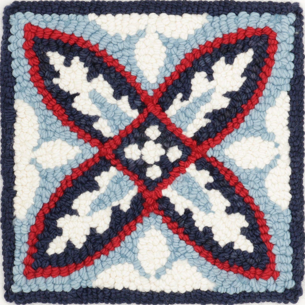 Tile is an 8” x 8" (20.3 x 20.3cm) pattern that is perfect for a tabletop decoration, makes a wonderful wall hanging, or can be turned into a pillow.
