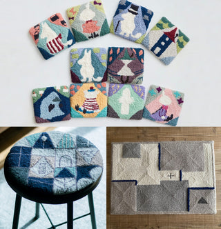 Kimiko started making rug hooking pieces in 2014, and in 2017 she fatefully came across Oxford Punch Needle. She was amazed at how easy it was to hold and how comfortable it was to use, and fell in love with making punch needle projects. She traveled to Vermont in 2019 to take private lessons with Amy Oxford. In 2020, she started to teach Oxford punch needle rug hooking in Japan. In the same year, her first book about Oxford punch needles was published, ``Punch needle, fluffy and gentle accessories'', her book is about a collection of her beautiful small rug works. Also the character of Moomin designs and punch needle kits with her original designs is on sale by the publisher. You can purchase it at NIHON VOGUE Corp. Online. She opened a rug making class in 2022, and she is also working passionately as a rug artist. She sells her creations at department stores and craft events throughout Japan. She is a certified Oxford Punch Needle Rug Hooking Instructor and at the same time she is a mother who takes care of two children. She lives in a suburb of Tokyo, where there are beautiful mountains and nature.